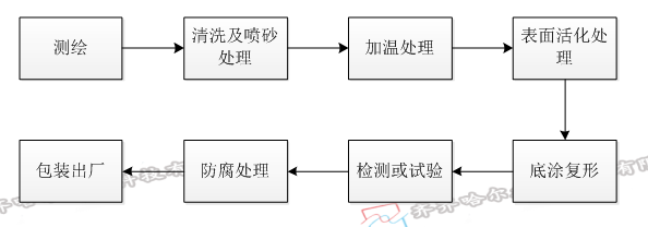 (1)将所有要进行修复防腐作业表面进行清洗预处理,将所有污物冲洗干净。